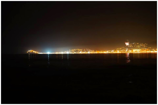 Ésta es preciosa, me encanta! Os cuento... las primeras luces a la izquierda es el castillo de Peñíscola, a tiro de piedra con Benicarló. Mucha gente se pasea a lo largo del paseo marítimo que une las dos poblaciones. Es un buen paseo pero un lujo vivirlo!