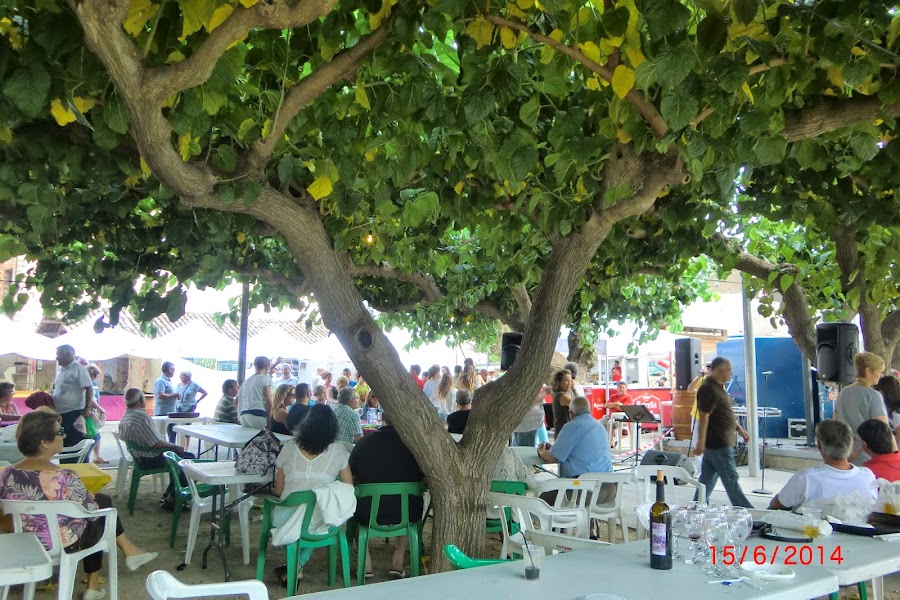 Disfrutando de la música como unos vecinos más del pueblo, tomando un refrigerio antes de partir hacia casa. Estábamos secos-secos! Casi deshidratados! Pero en ese parque se estaba de miedo! Fresquitos y relajados totalmente. Dio pena irnos, la verdad. Me gusta mucho el ambiente festivo cuando hay música :D
