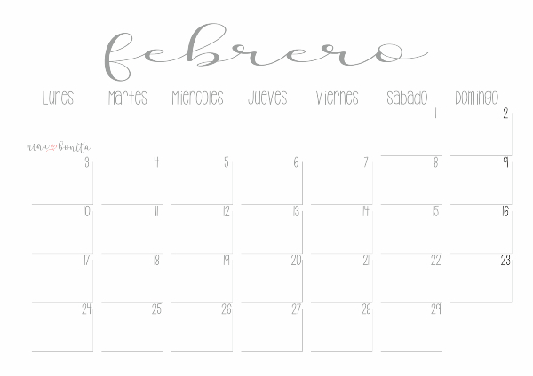 Hoy me paso por aquí para dejarte el imprimible del calendario del mes de febrero para que, como siempre, puedas organizarlo todo con tiempo suficiente.