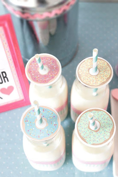 Bueno a lo que iba, que os he preparado un imprimible de fiesta Donut para que os lo descarguéis e imprimáis en casa o en la oficina. Con él podéis hacer unas decoraciones para las pajitas y sacar unas etiquetas la mar de monas.