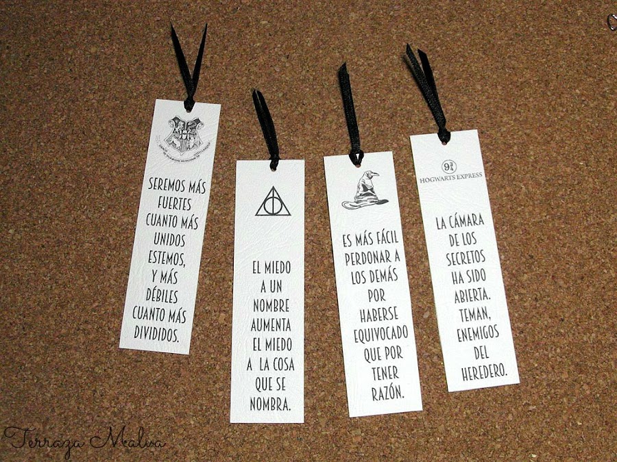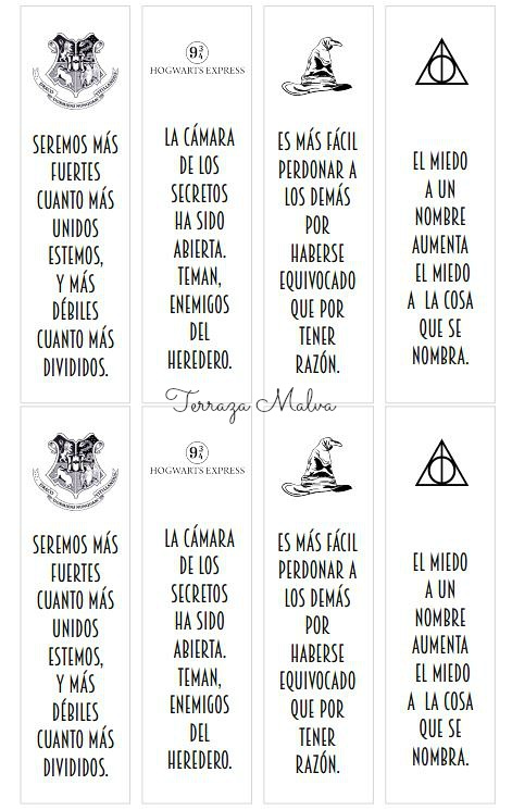 Si queréis imprimir y hacer vuestros propios marcapáginas para algún fan de estos libros os dejo el imprimible en formato pdf que podéis descargar desde este enlace. Es una página tamaño A4 en la que hay dos series de marcapáginas de un tamaño de 14,5 x 4 cm. cada uno.