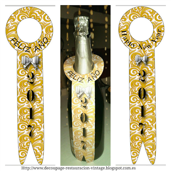 Aquí os dejo estos imprimibles que he hecho para decorar las botellas en Fin de Año. Sólo hay que descargarlo, imprimir y recortar.