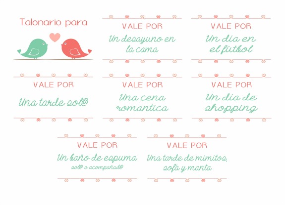 Hoy te traigo el imprimible de un talonario de vales para regalar por San Valentin.