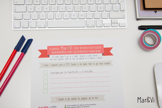 La lista Mar&Vi de todo lo que siempre he querido hacer es una especie de módulo que hemos preparado para ayudarte a tener siempre en vista tus objetivos para el 2014. Pero es además una ayuda para mantenerte siempre motivado, ya que podrás ir controlando tus progresos, y a fin de año, te ayudamos a ?hacer balance?, y si hace falta te damos un buen tirón de orejas!