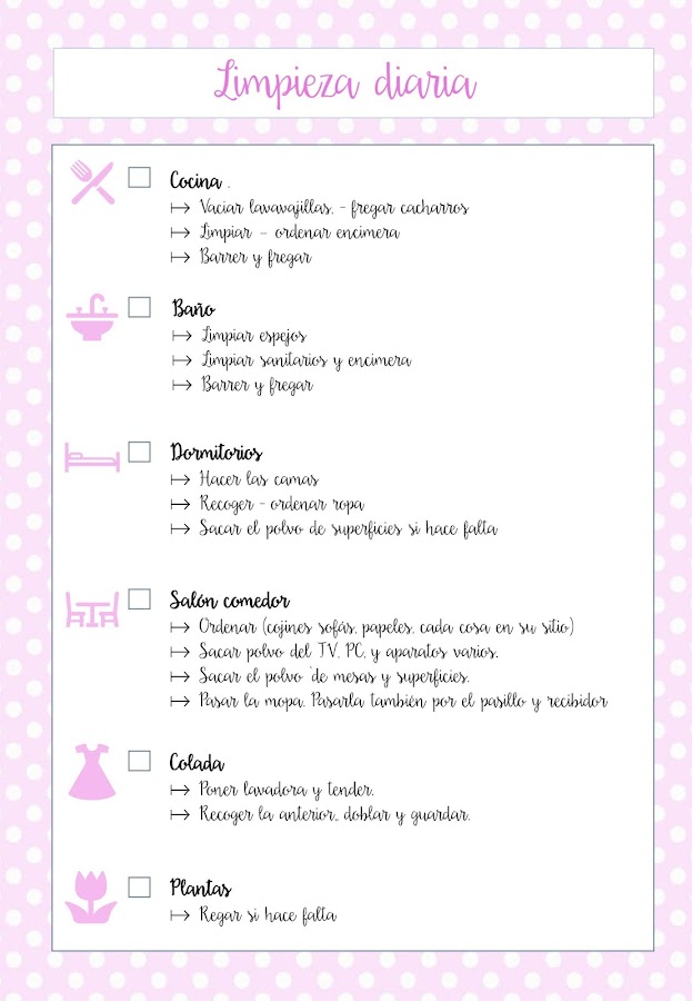 Imprimible Limpieza diaria ROSA - Dale CLIC y guarda en tu PC