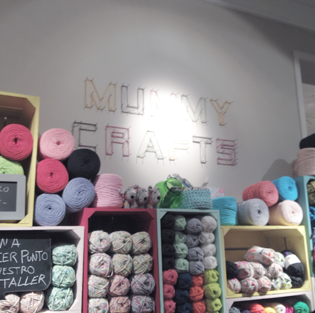 Una cosa que me ha encantado es que para la decoración han escogido las tendencias más actuales, como emplear palets o cajas de fruta como mobiliario. Y también el nombre de la tienda puesto con clavos y lana de colores en la pared, me ha parecido fantástico.