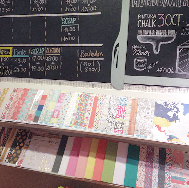 Otro punto muy guay de la tienda es la pizarra gigante que tienen en la entrada para apuntar los horarios y los talleres, que así no se nos escapa ninguno.