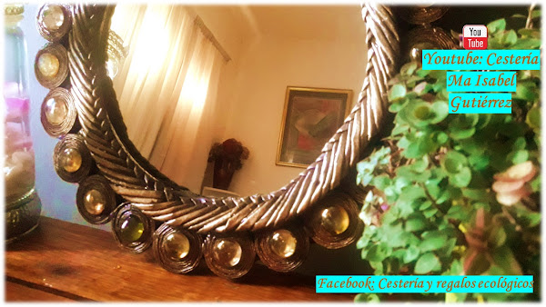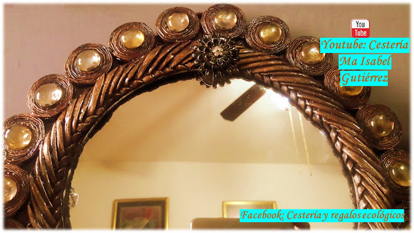 La trenza debe cubrir toda la circunferencia del espejo, y los aros pequeños los pegaremos alrededor de la trenza...