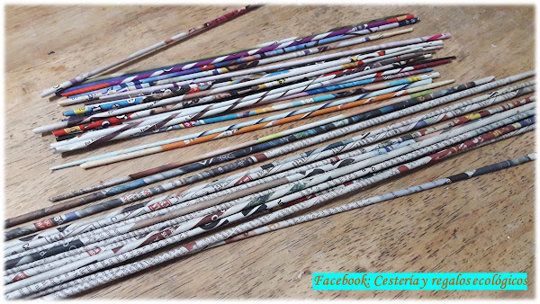 El papel lo cortamos en tiras y luego enrollamos con algún palillo delgado para hacer varillas o tubitos como los que te muestro enseguida...