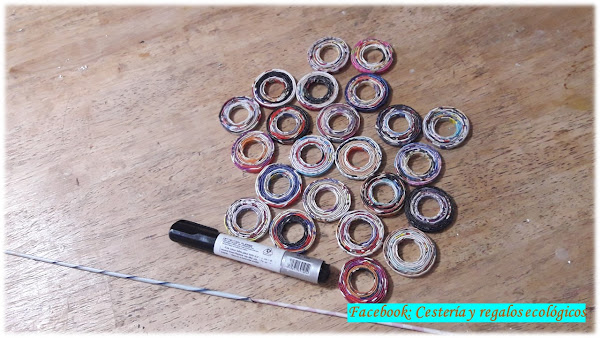Aparte, con las varillas de papel también hacemos unos pequeños aros enrollando la varilla alrededor de un bolígrafo o un marcador...