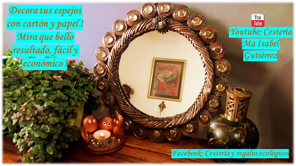 Sobre una de las piezas de cartón acomodamos el espejo centrando bien, delineamos alrededor y cortamos quedando un aro grande de cartón, con esto hacemos una especie de nicho donde pegaremos el espejo...