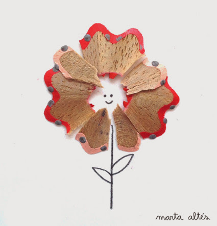 Nos parecía bonito hacer un post con esta manualidad tan sencilla, e investigando un poco nos hemos encontrado a una ilustradora: Marta Altés, y a una artesana Mae Alandes que utilizan las virutas de los lápices para hacer ilustraciones y bisutería artesana respectivamente. ¡una pasada!