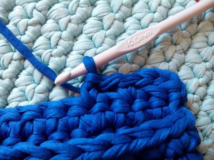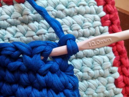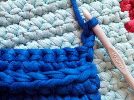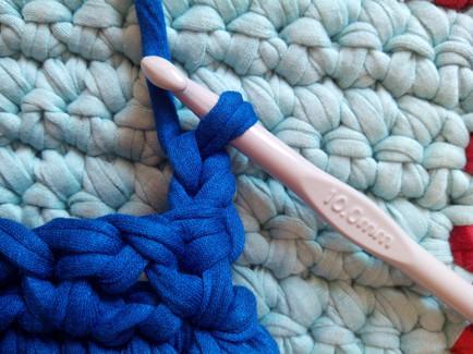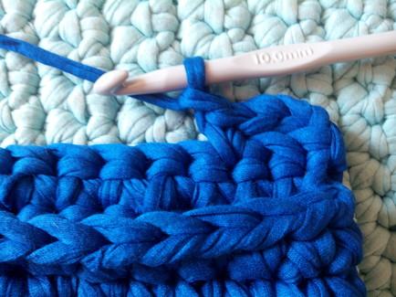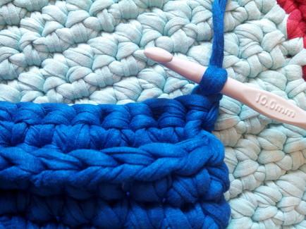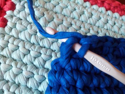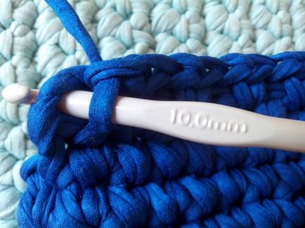 Continuamos con puntos bajos rodeando todo el tejido