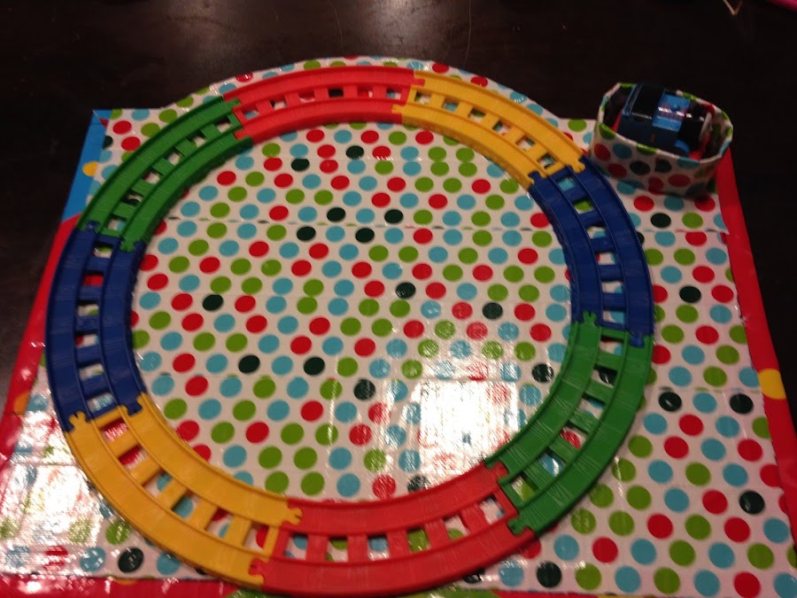 Yo le hice con un pedacito de cartón una casita para guardar el trencito cuando no lo use y de esta manera me aceguro que no se pierda.