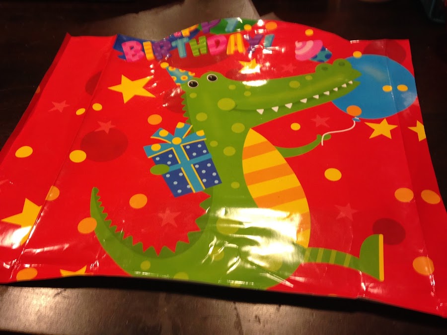 Cortamos la bolsa de regalo 2cm mas grande por lado del cartón.