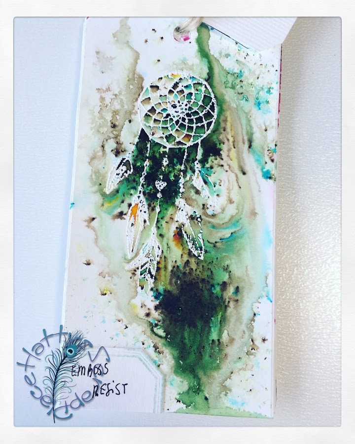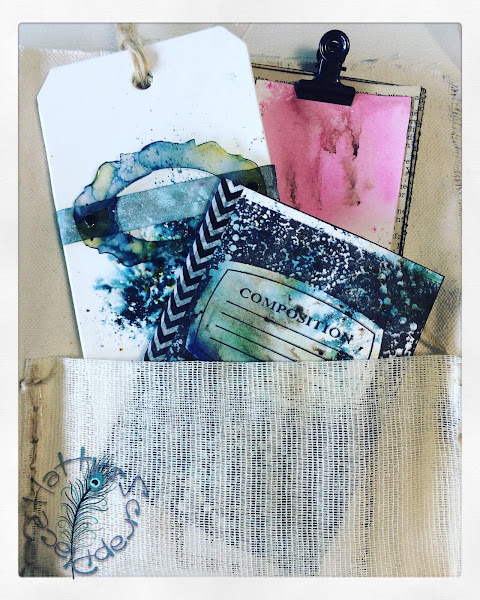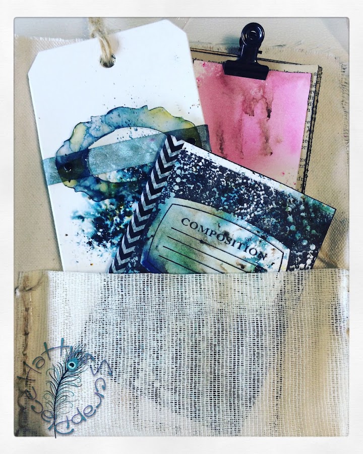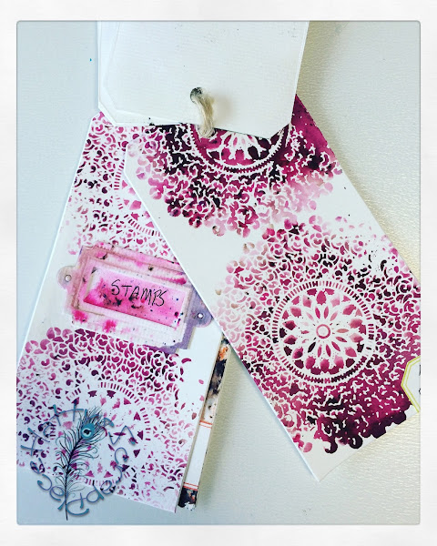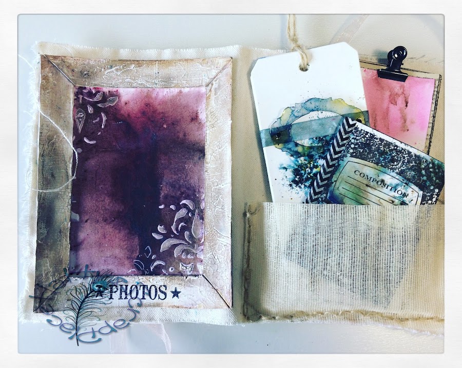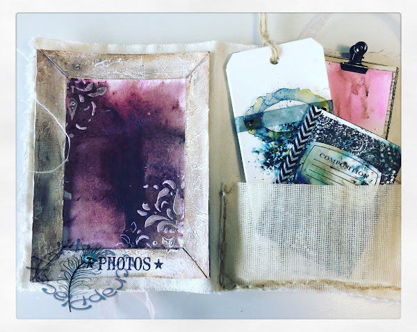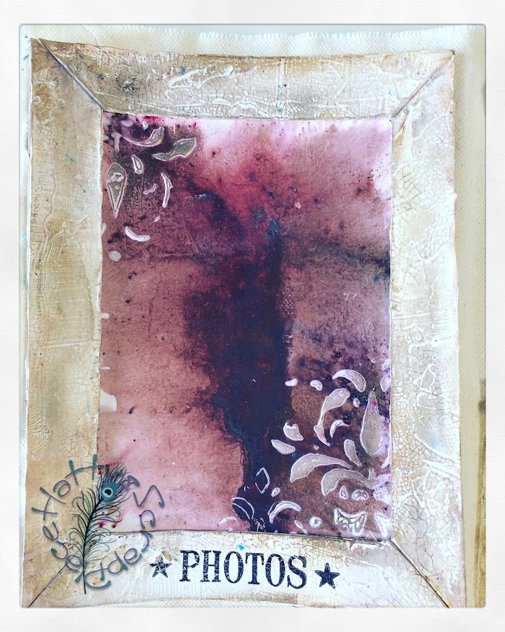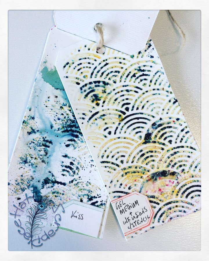 Stencil + Gel Medium + Infusions y la técnica de Kiss que dice Mónica (positivo y negativo del stencil)