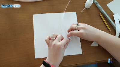 Luego empezamos a hacer motivos de filigrana que colocaremos alrededor de la inicial, pegándolos alrededor de la cartulina de la inicial. Vamos a hacer flores o distintas formas para rellenar todos los huecos.