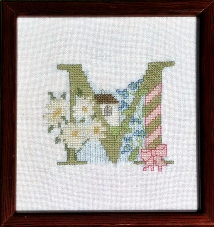 Son unos cuadritos que bordé hace años a punto de cruz, con las iniciales "M" de Montserrat y "J" de Javier. (mis padres)
