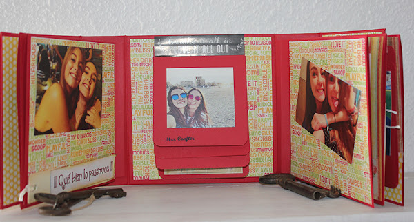 Este álbum se lo ha regalado Elena a Vega, su mejor amiga, un bellezón de niña como vereis en las fotos. Elena quería regalarselo con fotos que tenían de las dos, asi que pensamos en este formato, armario, en tamaño pequeño 16x16, que queda perfecto para recoger un acontecimiento, un cumpleaños. Han entrado 28 fotos colocadas, además de poder guardar más en las hojas que en realidad, son sobres.