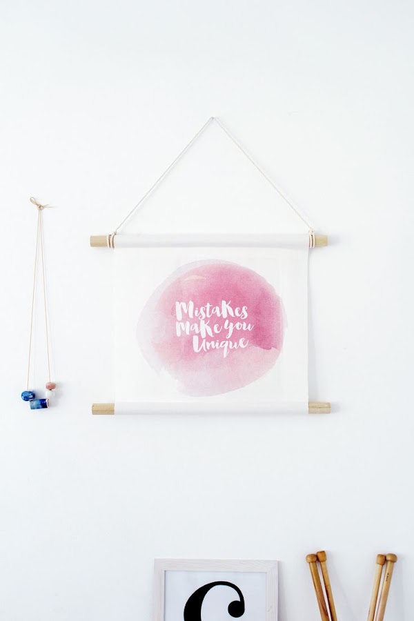 Y por supuesto, una idea a la que no he podido quitarle el ojo es esta con tipografía estilo lettering y efecto acuarela. La del diy original lo hace imprimiendo y haciendo transfer, pero yo voy a probar a ver si consigo hacerlo con mi método de spray ;)