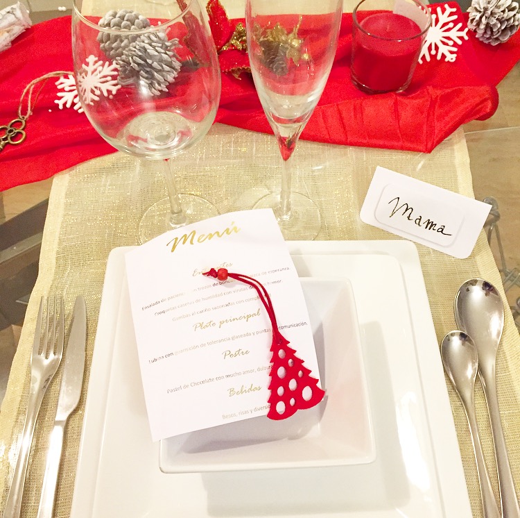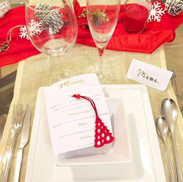 El primer estilo que os enseño es el de Navidad Tradicional, los tonos Rojos y Dorados son una combinación ganadora. Podéis combinar diferentes telas y colocar elementos decorativos en el centro. También podéis complementar vuestra mesa con las etiquetas de nombre y un bonito menú impreso, eso le dará un toque muy elegante. Otro elemento que os puede ayudar a decorar son las velas, además añaden ese toque de calidez.