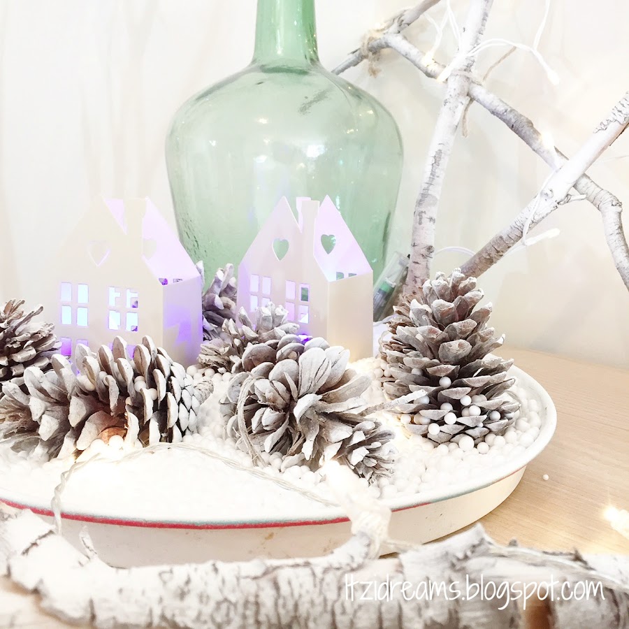 Pasamos a la Decoración que más de moda se ha puesto en los últimos años, El estilo Nórdico, ese toque de limpio y sencillo es lo que enamora a todos. Para este estilo podemos utilizar piñas pintadas con un toque blanco, elementos de color turquesa y no recargar la decoración, tiene que ser sutil y muy natural.