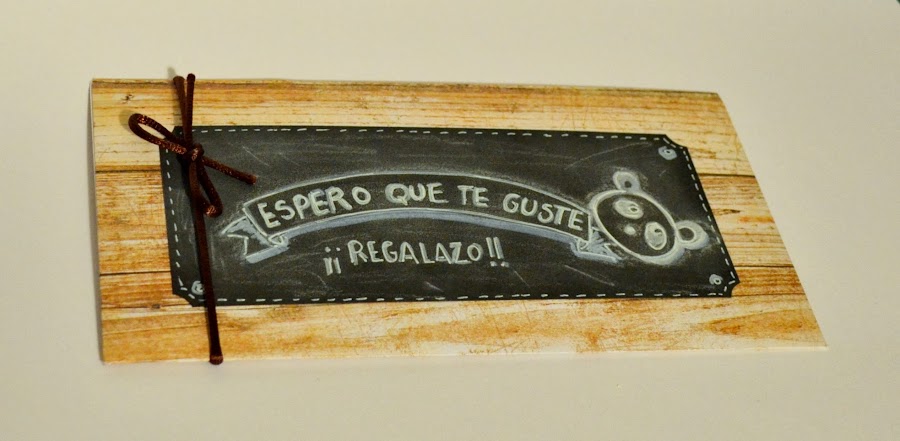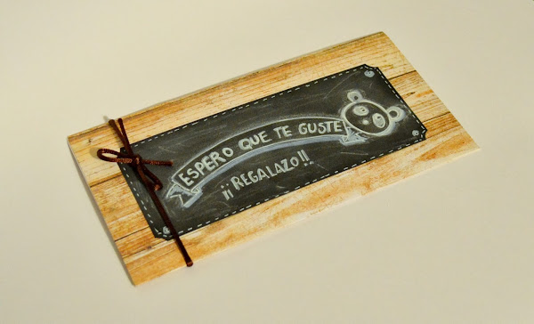 - Otra idea, cuando regalamos un vale o unas entradas, es hacer un sobre con papeles de scrapbooking y tonalidades de nuevo muy discretas, con mensaje personalizado.