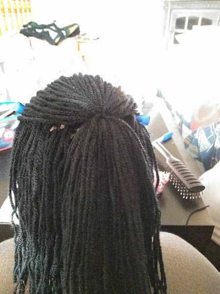 Antes de unir la cabeza al cuerpo, la muñeca entró en peluquería porque con esa melena no quería que me molestara el cuerpo para manejarlo mientras iba poniendo uno por uno el pelo. Sí, sí, estais leyendo bien, la melena fue colocada pelo a pelo. Cuando empezó el proceso parecía cualquier cosa menos una bella y dulce muñeca que era mi objetivo, pero tuve paciencia y constancia y conseguí una frondosa melena larga y negra.