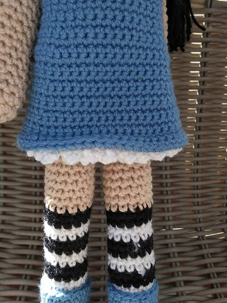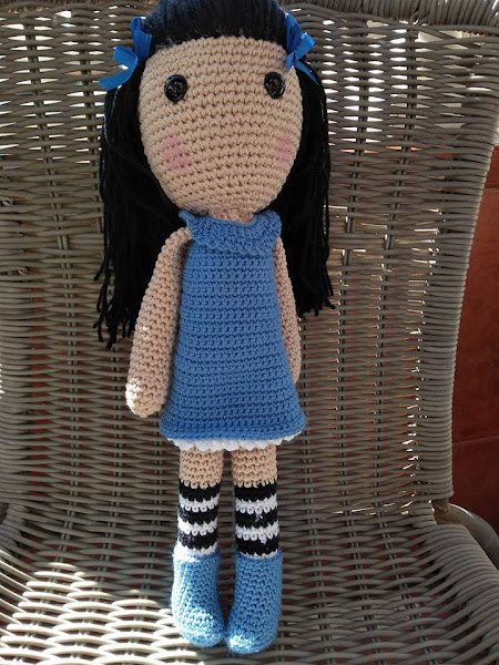 Y ya tan sólo le falta adornar un poquito el pelo y el resultado final. Ha quedado de aproximadamente 40 cm de altura. Todo una señorita, pero me encanta y los ojitos redondos no le quita ni "chispita" belleza.