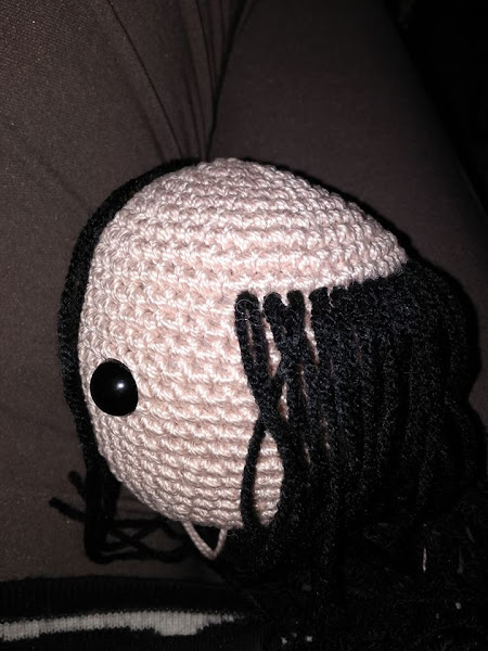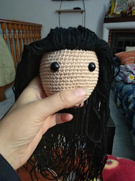 Una vez terminada hubo que peinarla. En este punto, tengo que reconocer, que me asusté un poco ya que mis dotes "peluqueriles" no son muy buenos y no me atreví a hacerle el flequillo no fuera a echar a perder tanto esfuerzo. Así que opté por frente despejada y media melena en una cola.