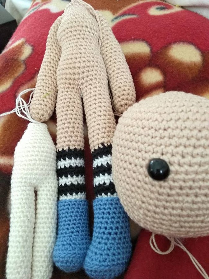 Lo primero fue hacer la base del cuerpo y la cabeza (el cuerpecito blanco es otro proyecto que os enseñaré en la siguiente entrada del blog, quién me conoce sabe que no se llevar un sólo proyecto entre manos). En el momento que hice la cabeza me di cuenta que la muñeca iba a ser grande. Me preocupé un poco porque no tenía ojos ovalados y le puse redondos, no sabía si quedaría bien, pero eso lo juzgareis vosotros mismos con el resultado final.