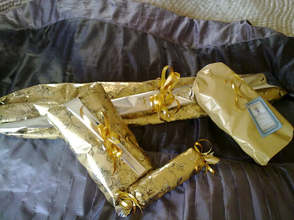 ¡¡ Qué alegría me llevé con mi regalo !! Era de allande los mares.......nada más y nada menos que desde Argentina me lo mandaba mi AS, que no era otra que Maria Cirila. ¡ ´Qué bonito, qué elegante y qué cuidado su cartel...divino de la muerte. Pero primero os enseño otras cositas que venían también en el paquete