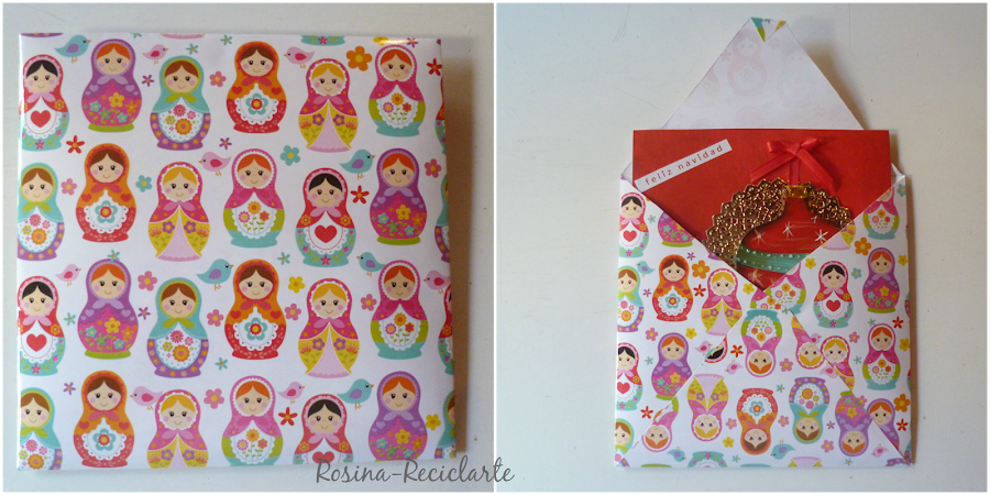 Y por supuesto un sobre hecho en casa con papel de regalo( cero de navideño por cierto!)