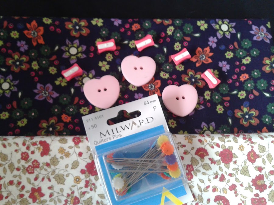 Y para completar este Inter, sabiendo que le gusta mucho hacer patchwok, le mandé un par de telitas y unos alfileres especiales para ello, junto con algunos botones en rosa para cuando le haga algo a su preciosa nietecilla.
