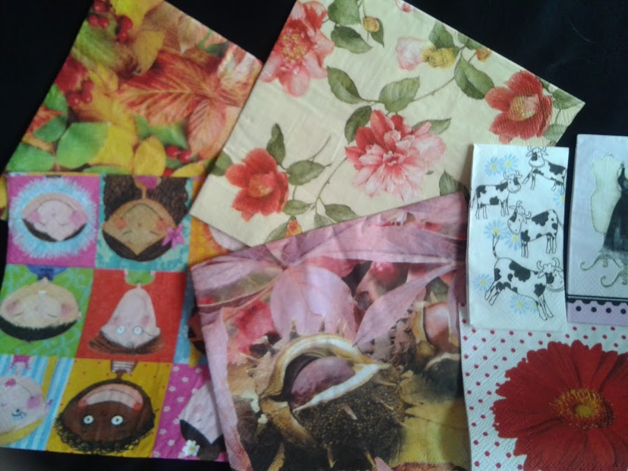 Un montón de servilletas y pañuelos para hacer decoupage. Todas muy alegres y además ninguna la tengo repetida