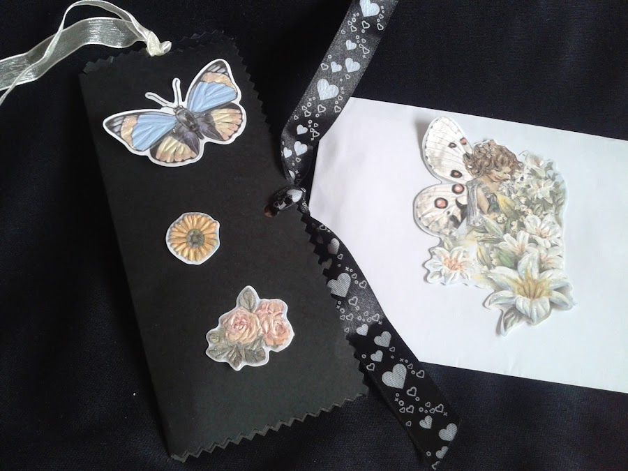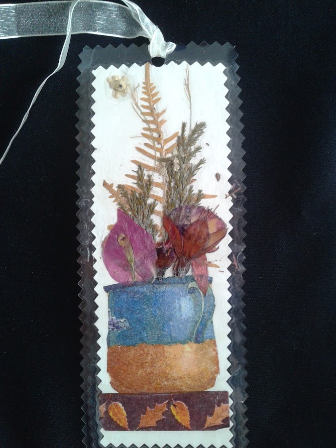 Y dentro de el sobre este marca paginas también con flores y hojas secas, precioso.Además plastificado, para poderlo usar sin problemas