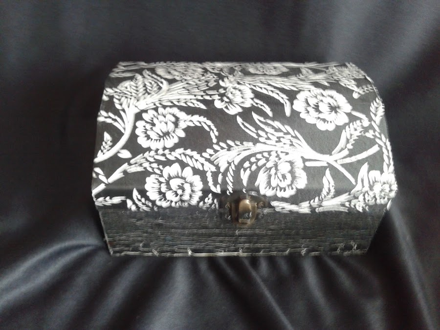 Haciendo juego con el malma, este baúl de madera también decorado con las mismas flores y craquelado. Que ya tengo bien lleno con algunos collares que andaban de un lado a otro de la mesilla,jajajaajaj