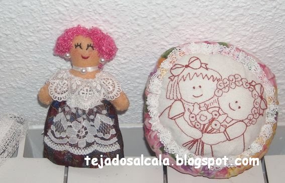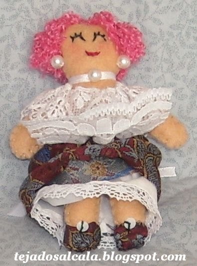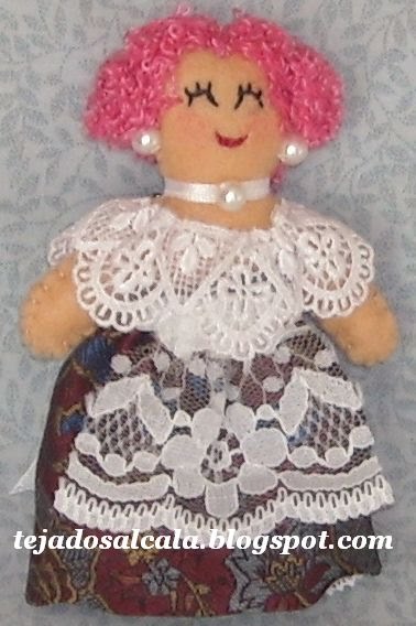 Como ya lo he enviado y lo ha recibido os puedo enseñar lo que iba junto al acerico y es algo pensado tambien en exclusiva para ella. Cuando se hizo el sorteo y cada una ya sabíamos a quien teniamos que enviar, enseguida supe lo que quería que acompañara al acerico, así que le hice una muñeca-broche, pero vestida de fallera, porque ella esta muy integrada en esta tradición, vive las Fallas plenamene y nos ha hecho vivirlas con ella, sobre todo el año pasado que su hija fue Fallera Mayor.
