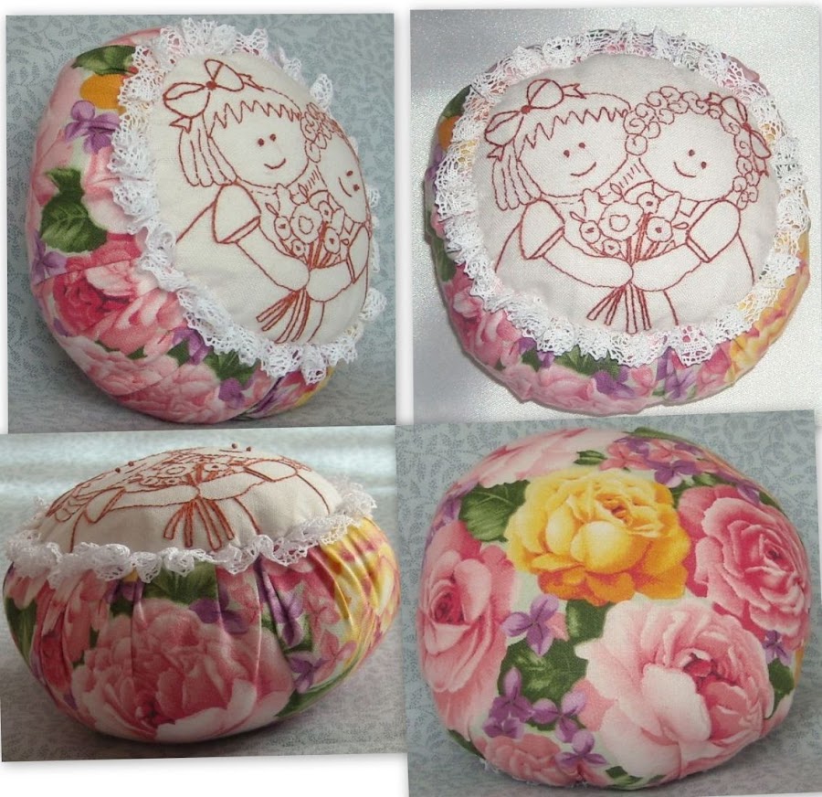 Yo este año he presentado el que os muestro en las fotos, arriba un plano general y abajo un collage para verlo desde distintos angulos. Está realizado en redwork y lo hice pensando en la destinataria Pepis
