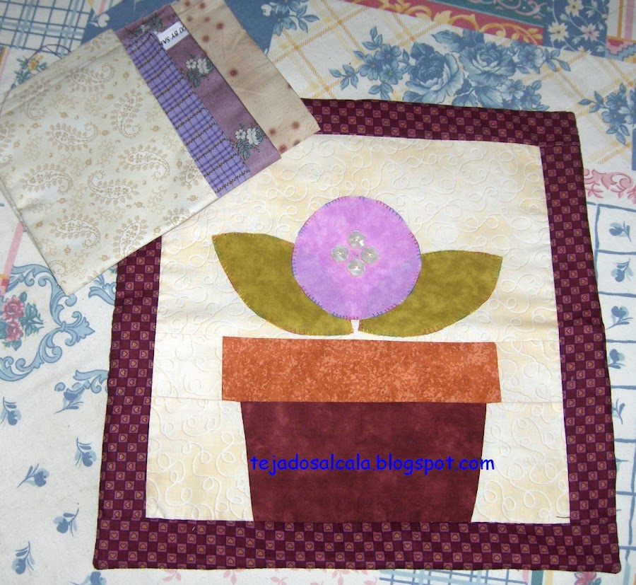 Yo recibí de Toñi un precioso miniquilt con una gran macetita, precioso, precioso y las telas que venían acompañando una delicia.