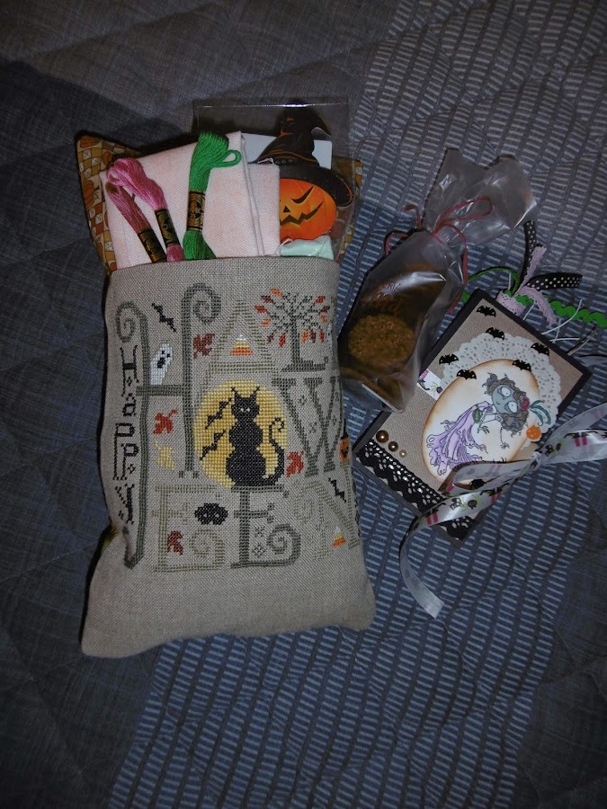 Ya es un clásico en el grupo de punto de cruz hacer un intercambio para Halloween.....Esto es lo que envié yo a Isa Fres, lo enseñare por partes con detalle......