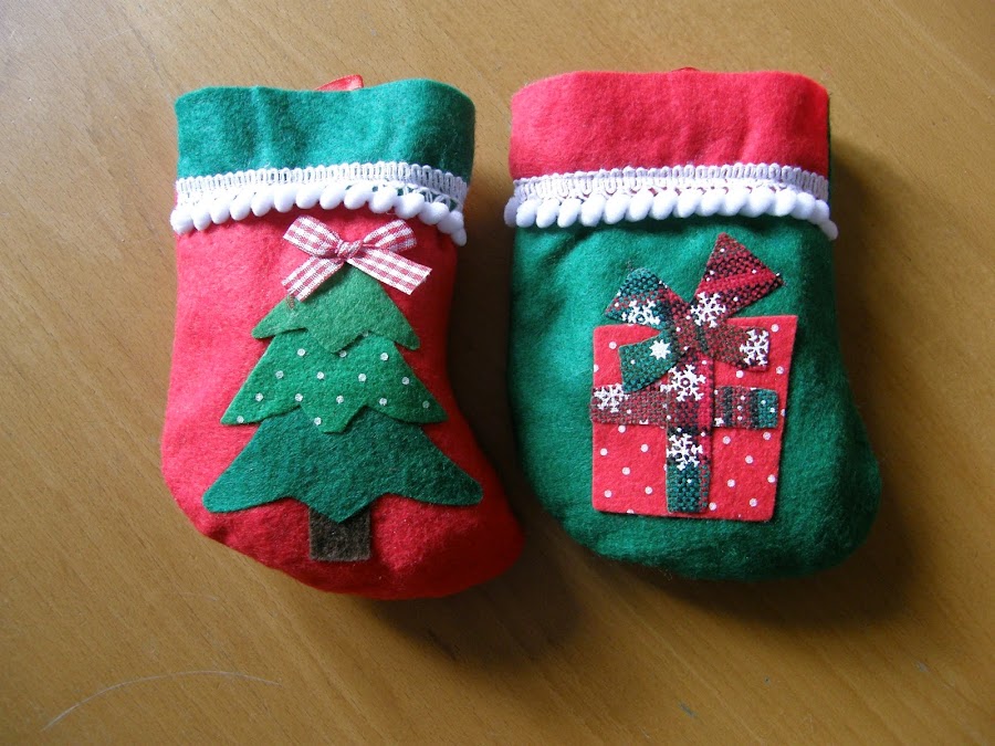 Botitas de fieltro llenas de chocolatitos par mis niños, rescatadas temporalmente para la foto.