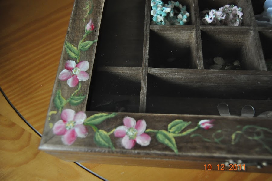 La caja de madera que nos habíamos puesto como reto y que está pintada por ella. La verdad es que hace muy bien todo lo que se propone.