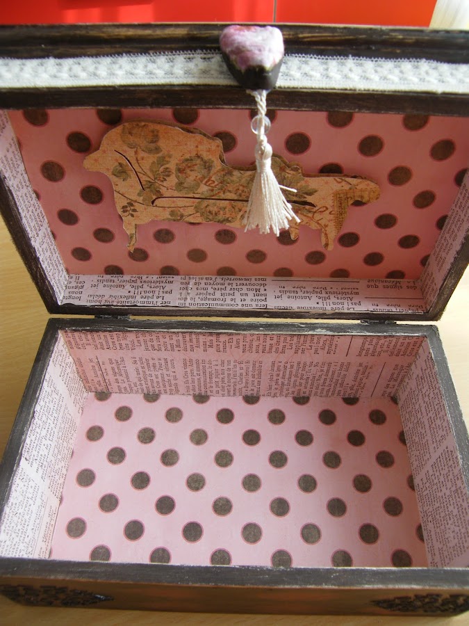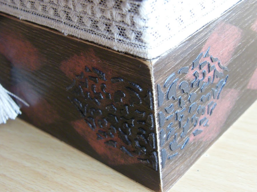 Una preciosa cajita decorada con muchísimo gusto, que me ha encantado!!! detalle del relieve
