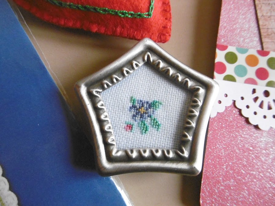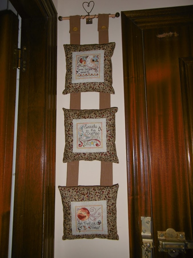 Me llego un super-regalo de Rosa Rosae, el intercambio consistía en un bordado y teníamos que elegir entre 5 los tres preferidos. Imaginaron mi sorpresa cuando vi los tres!!! y montados de una forma tan original y practica, no me costo nada buscar un logar y colgar de inmediato.