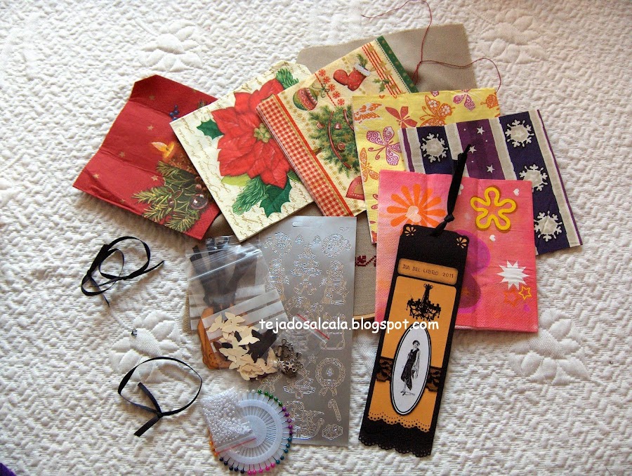 También le envÃe unas cintas y unas telitas y otro marcapaginas comprado que me hizo mucha gracia.