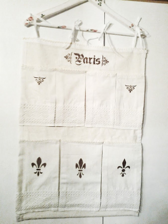Un organizador de tela con su percha decorada