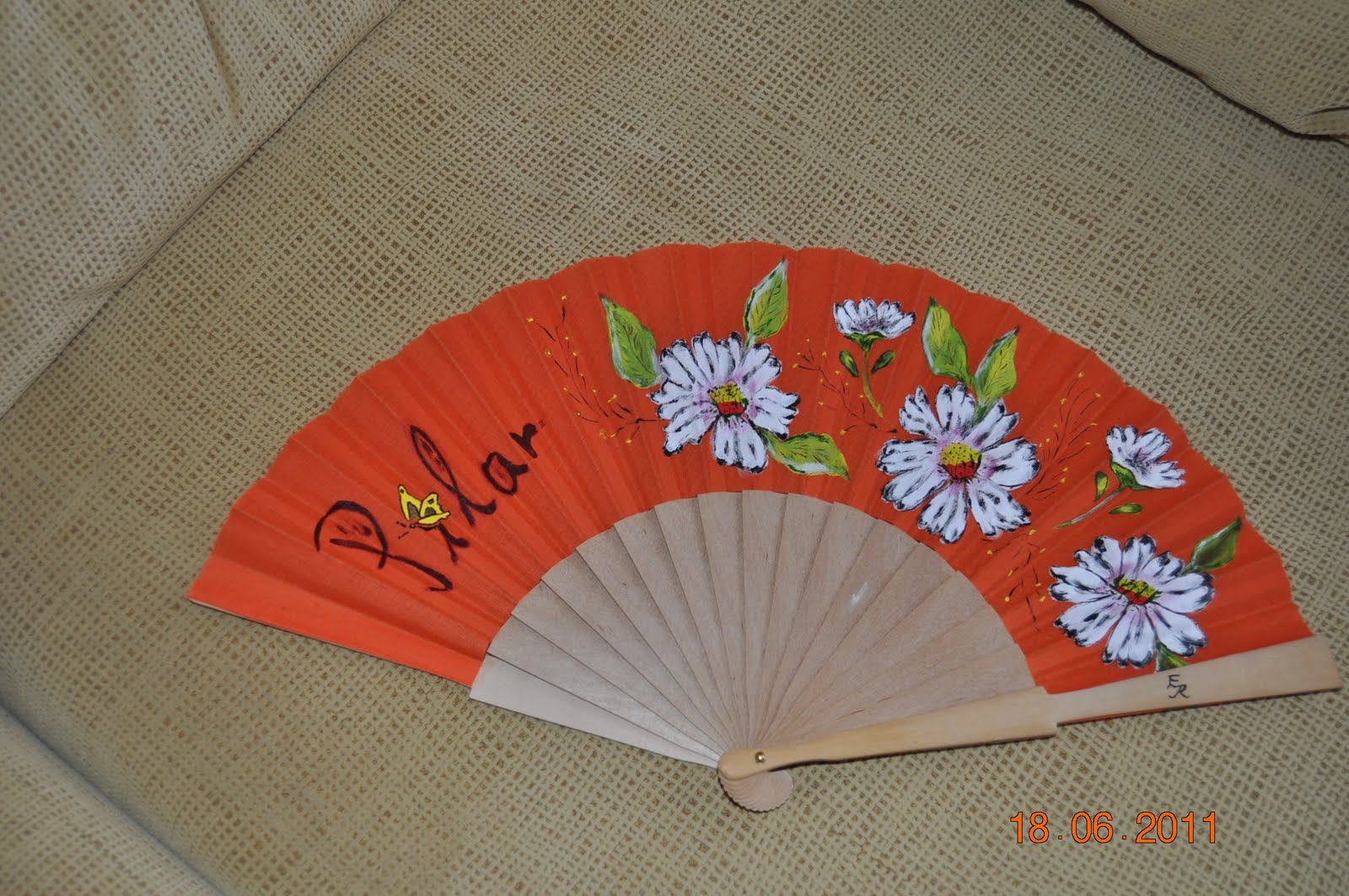 Un abanico pintado a mano y personalizado con mi nombre.