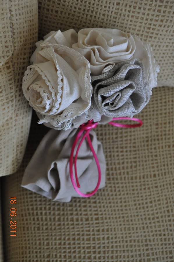 Un ramo de rosas de tela. Es un ramo encantador.