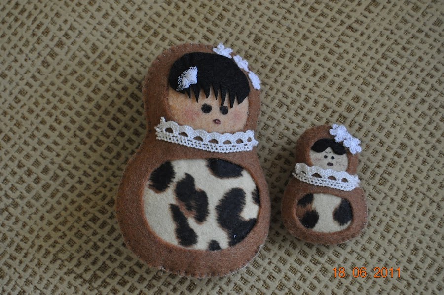 Unas matriuskas hechas con fieltro y con muchos detallitos. Ya podéis ver lo bonitas que están.